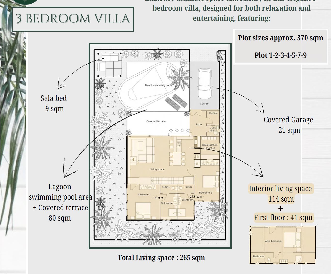 Part of the acclaimed ERA Tropical project, this spacious 3-bedroom villa sits on a generous 370 sqm land plot with a total usable area of 265 sqm. With a stunning lagoon-style private swimming pool, sustainable design elements, and high-quality construction by an experienced developer, the Era Tropical 3BR Unit is perfect for discerning buyers seeking both lifestyle and investment value.