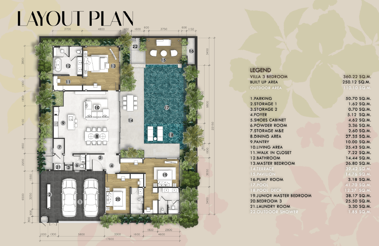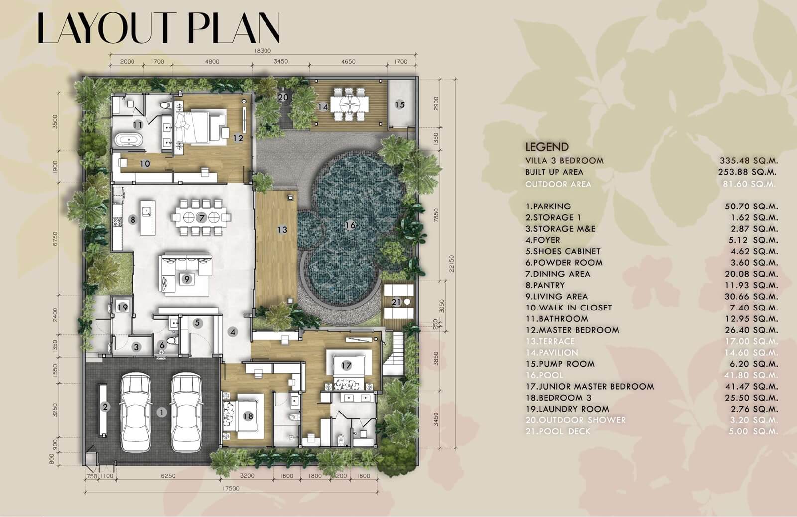 With a built-up area of 335 square meters and generous plot sizes ranging from 490.49 to 822.16 square meters, every home ensures both privacy and an expansive sense of freedom. The impressive private swimming pool, sized at 5.5 x 10 meters, becomes the centerpiece of the outdoor living experience, perfectly framed by landscaped gardens and a stylish pool deck.