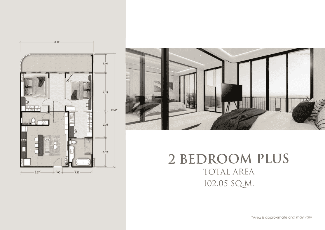 Step into the perfect blend of luxury and flexibility with the Ever Prime Residences 2 Bed Plus Unit, a thoughtfully designed condominium within the sought-after Ever Prime Residences development in Karon, Phuket. With a spacious 102.05 sqm layout, this exceptional residence is ideal for families, remote professionals, or investors seeking extra room for work, guests, or leisure—without compromising on style or location.