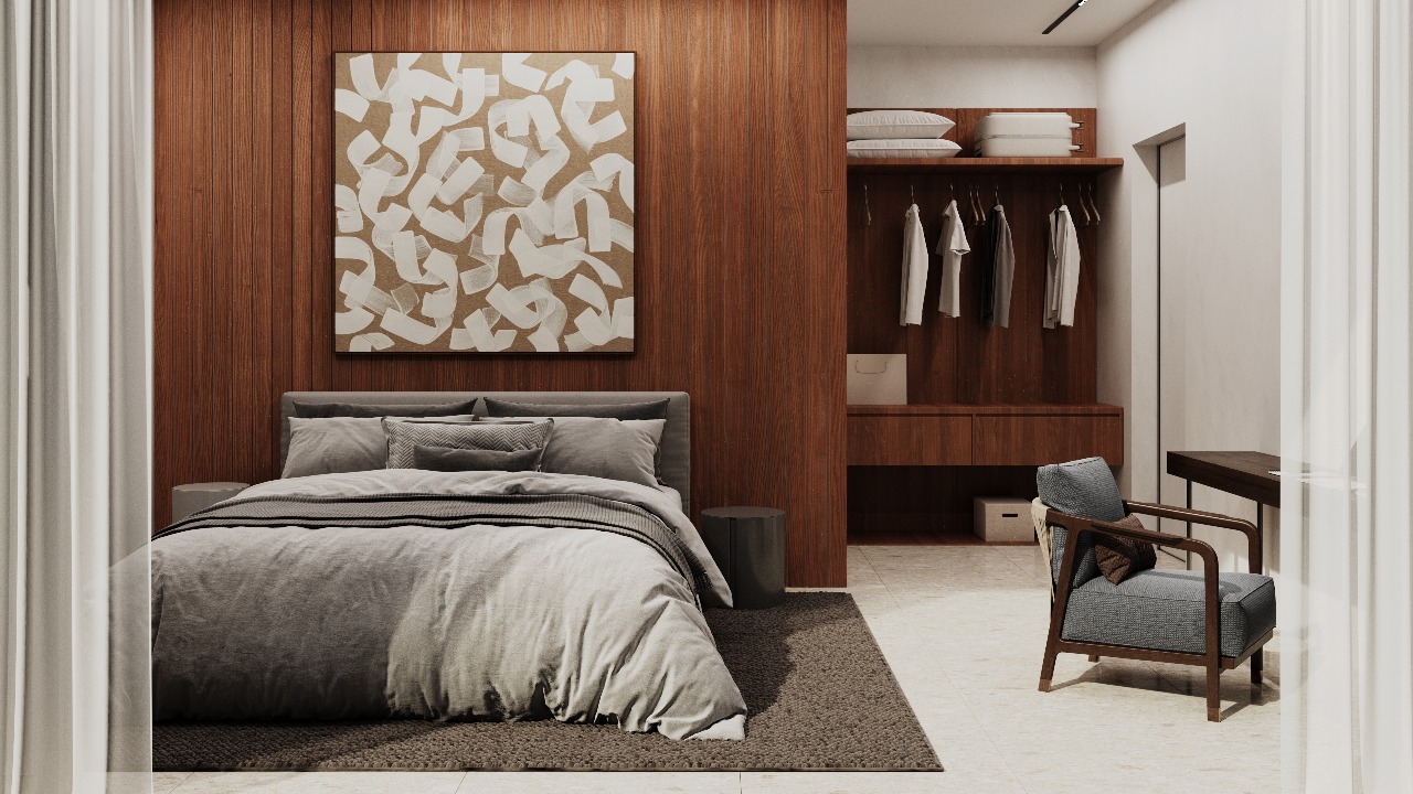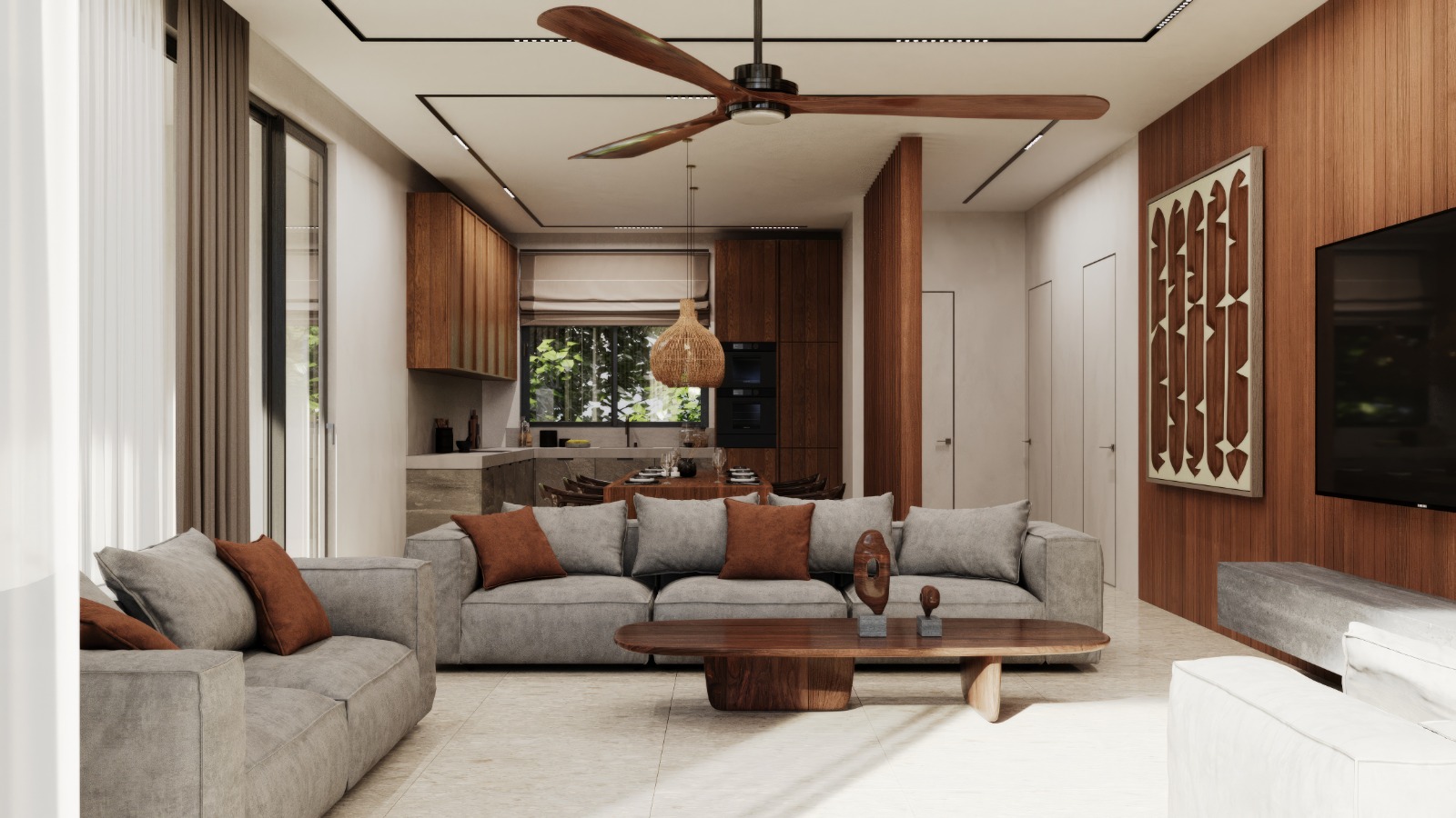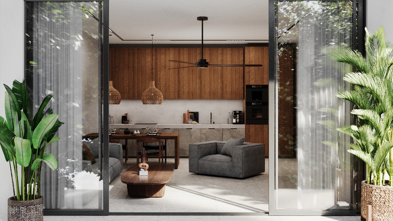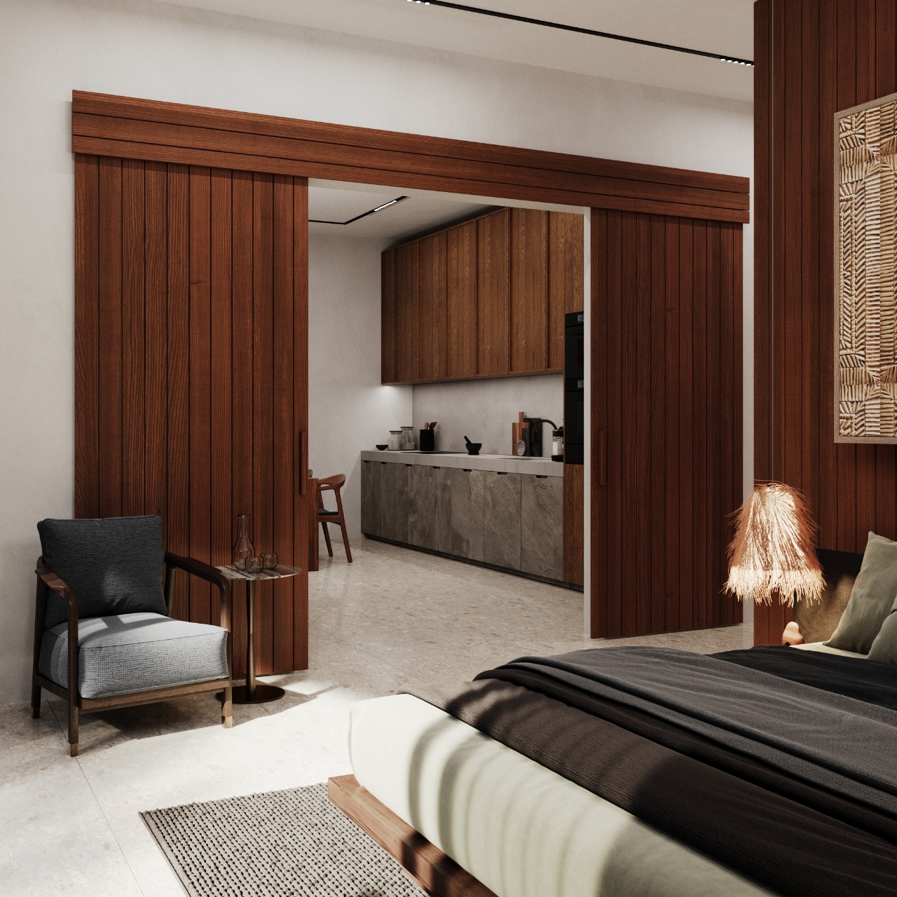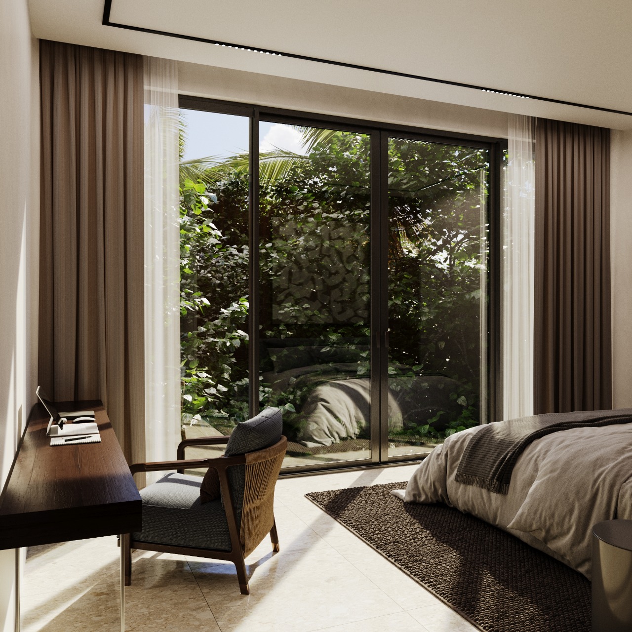 The 3 Bedroom Penthouse at Gaia Residence is defined by its architectural scale and volume. Featuring impressive 4.5-metre high ceilings, expansive glazing, and oversized terraces, the residence creates a dramatic sense of space rarely found in island developments. Natural light floods the interior, while large sliding doors open seamlessly onto outdoor living areas, creating a fluid indoor–outdoor lifestyle ideal for tropical living.