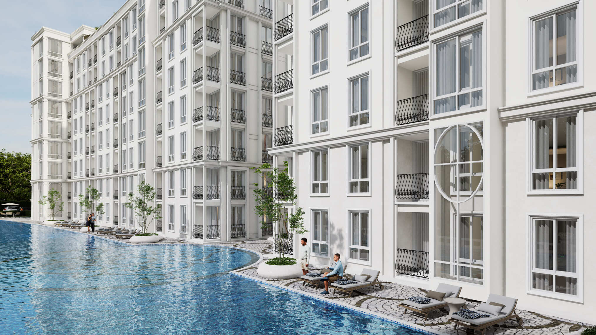Harmonia City Garden Pattaya consists of four elegantly crafted low-rise buildings, each with eight floors, thoughtfully positioned around a central recreational zone featuring lush green spaces and a stunning lagoon-style swimming pool that wraps around the entire complex. Residents are welcomed by a tropical ambiance and a relaxed island vibe as soon as they enter the premises.
