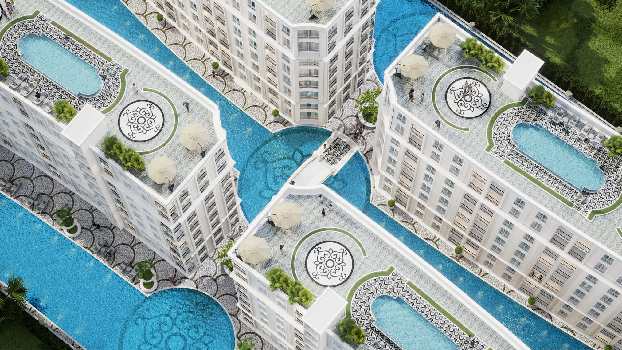 From the smart layout of interiors to the high-quality finishings and built-in furnishings, each residence reflects the developer’s attention to detail and passion for excellence. Large windows and private balconies ensure natural ventilation and views over the landscaped gardens and pools, enhancing the resort atmosphere.