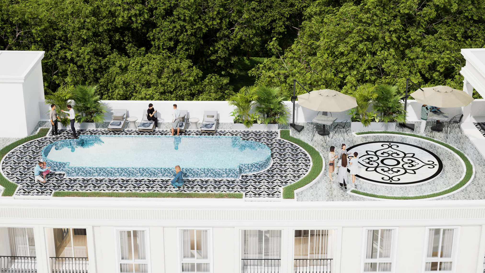 Expansive Swimming Pool with Island Gardens
