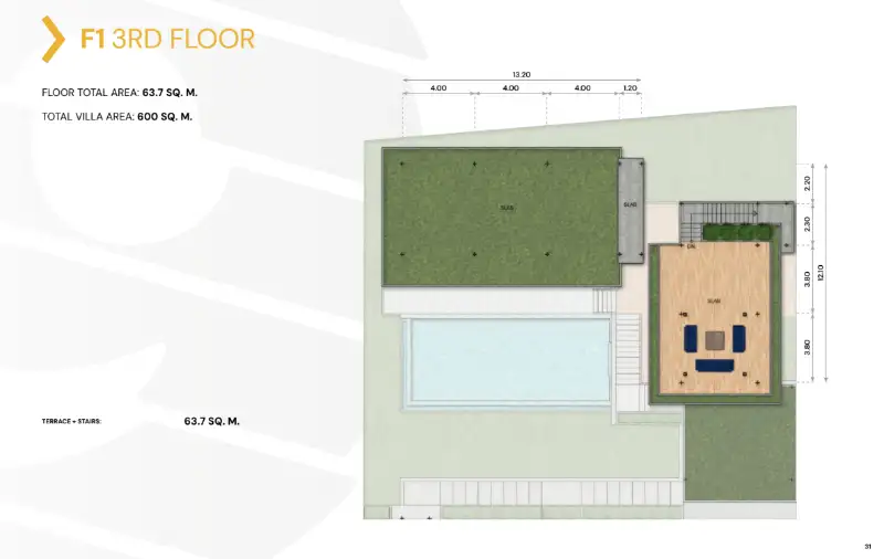 Private swimming pool (up to approx. 60+ sqm in larger configurations)