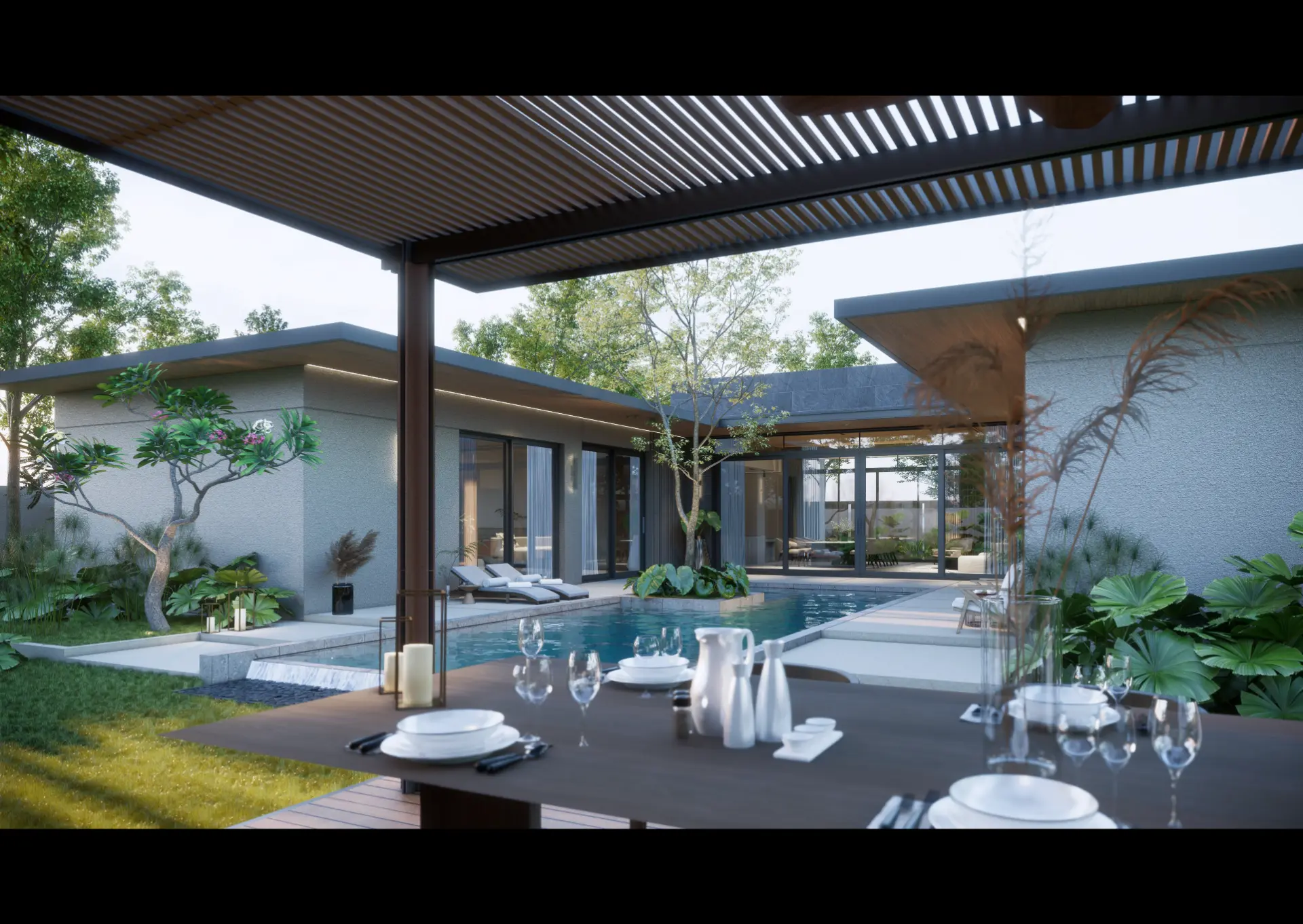 Luxury pool living: Private pool and landscaped terrace form the heart of each villa’s design.