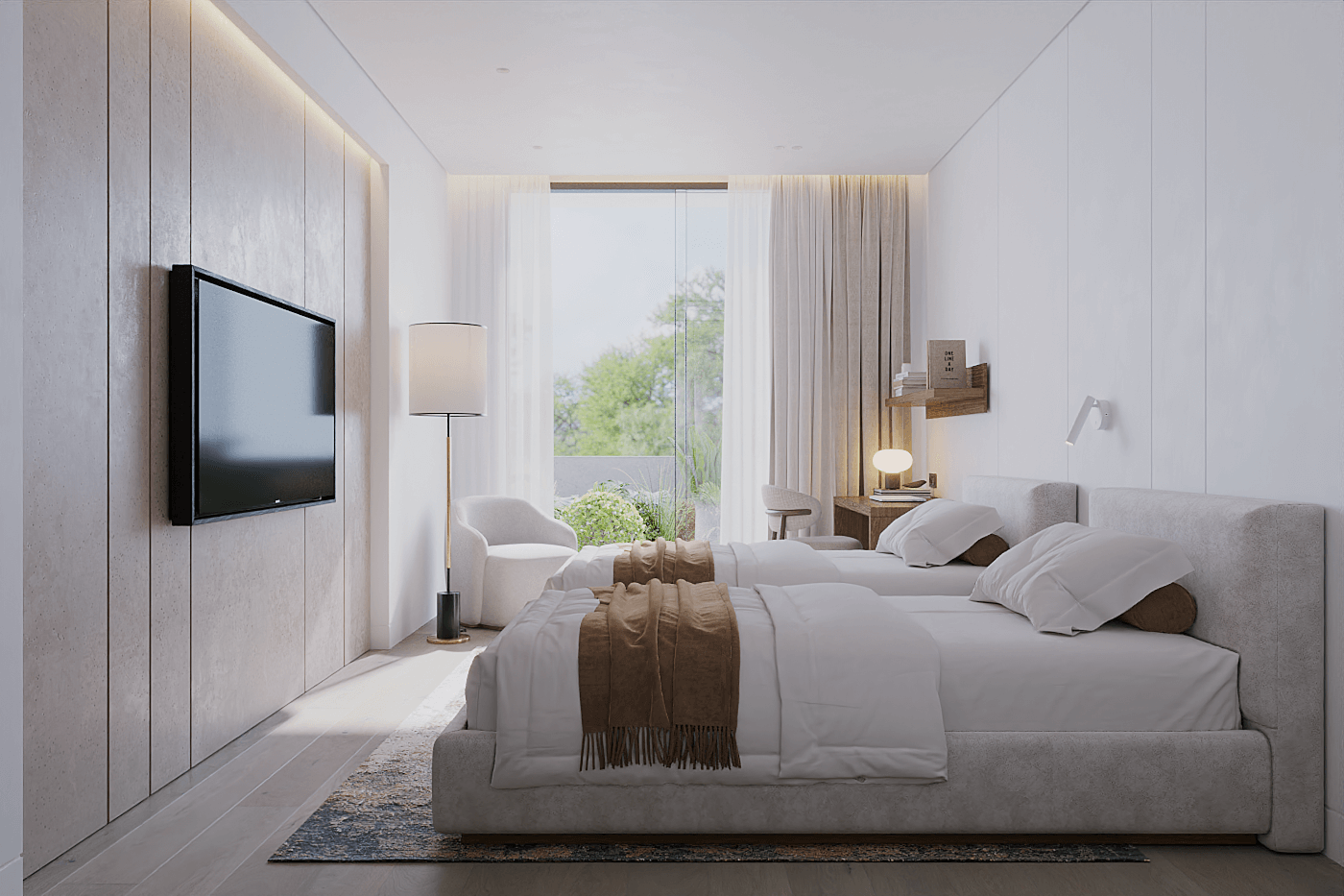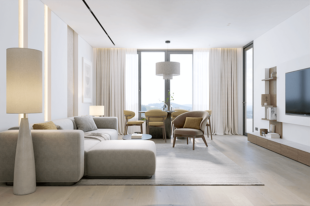 The Layan Green Park Phase 2 – 3BR (Garden/Pool) apartment offers a spacious floor plan that includes three large bedrooms and three contemporary bathrooms. Each bedroom is positioned to ensure privacy and comfort, making the layout ideal for families or groups who want both shared spaces and individual retreats. The master suite features an ensuite bathroom with premium fixtures, while the two additional bedrooms have easy access to the remaining bathrooms, all designed with a clean, modern aesthetic.