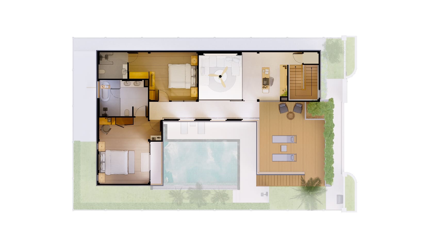 Le Villa Lake – Type B is an exclusive two-story villa situated in the highly sought-after Le Villa Lake development, just 6 km from Bangtao Beach. This contemporary residence is designed to offer luxury, comfort, and functionality, making it an excellent choice for both residential living and investment purposes. With a land size of 322.73 sqm and a build-up area of 350 sqm, this villa provides ample space for modern living, ensuring that every corner is carefully designed for a superior lifestyle.