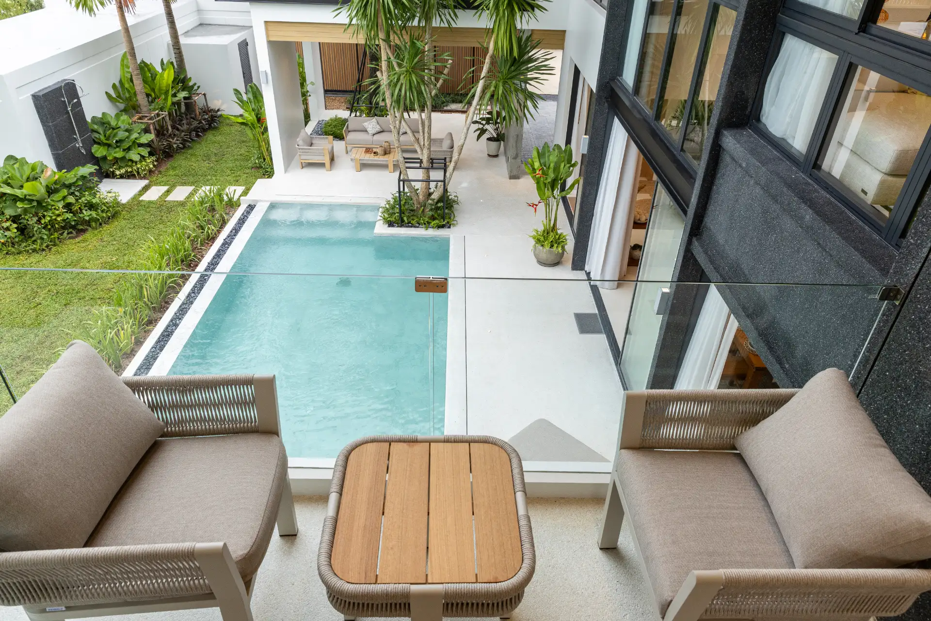 At Mouana Grande, indoor and outdoor living are designed to harmonize. The spacious terrace, outdoor living zone, and private swimming pool create a seamless transition from interior luxury to tropical serenity. Enjoy your morning coffee surrounded by lush landscaping or unwind under the stars with a swim in your private pool, followed by a rinse in the outdoor shower—this is Phuket living at its finest.