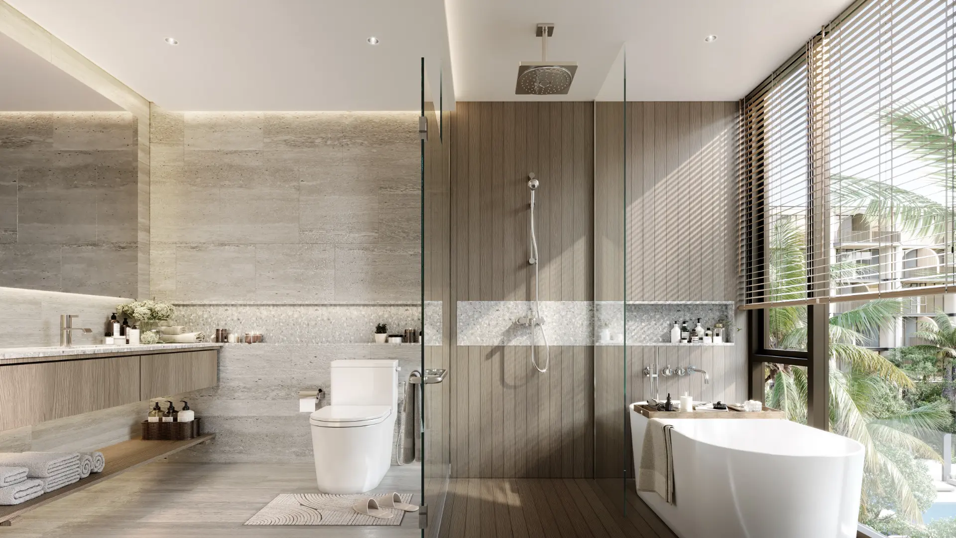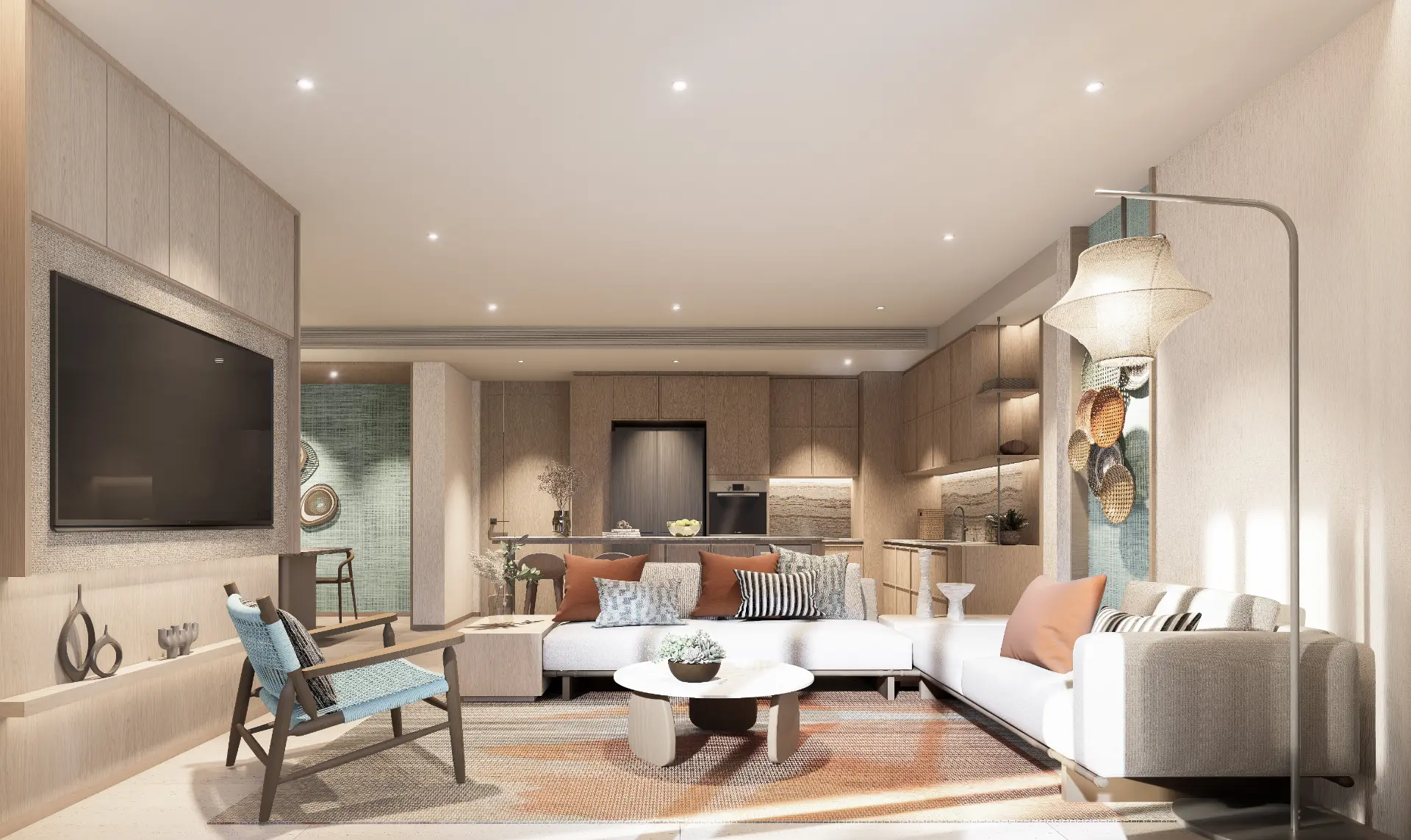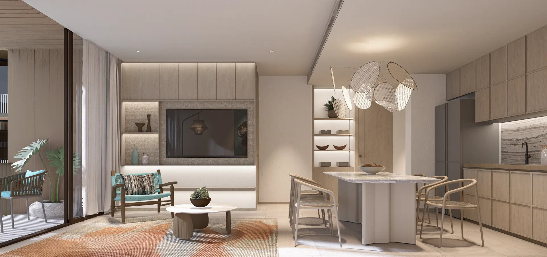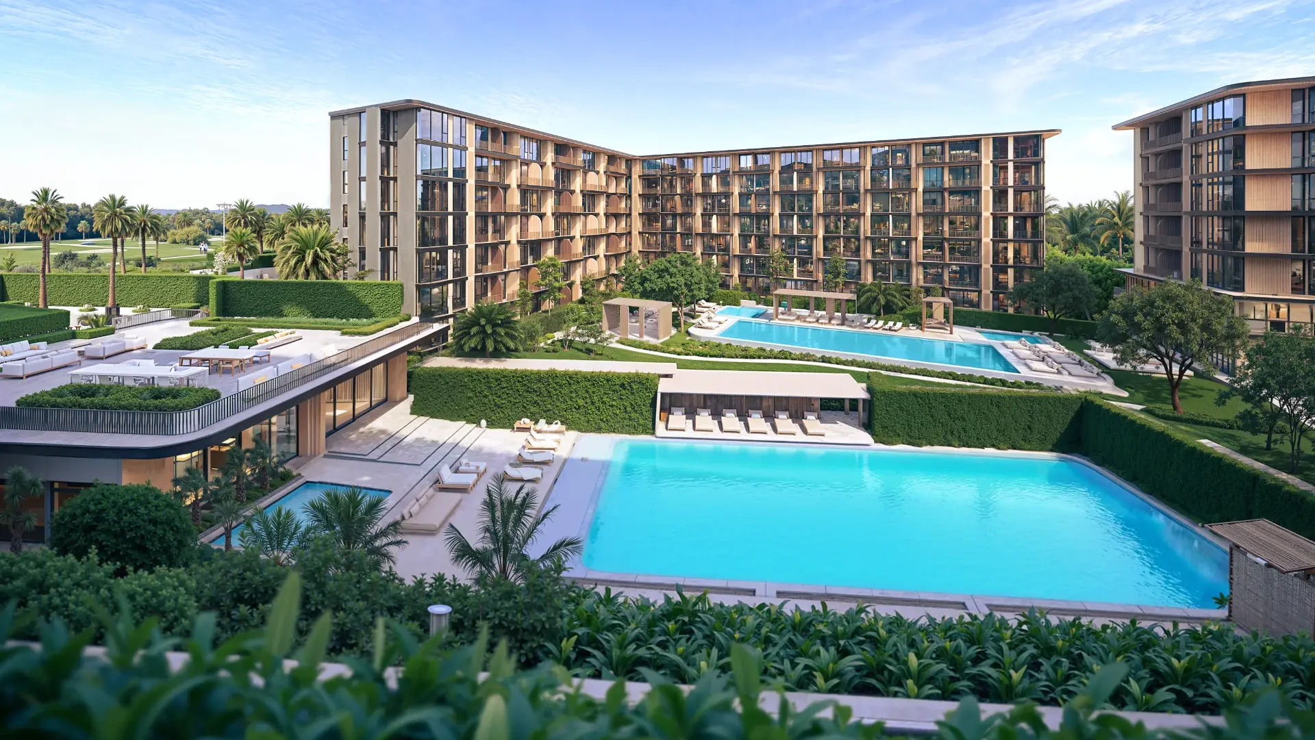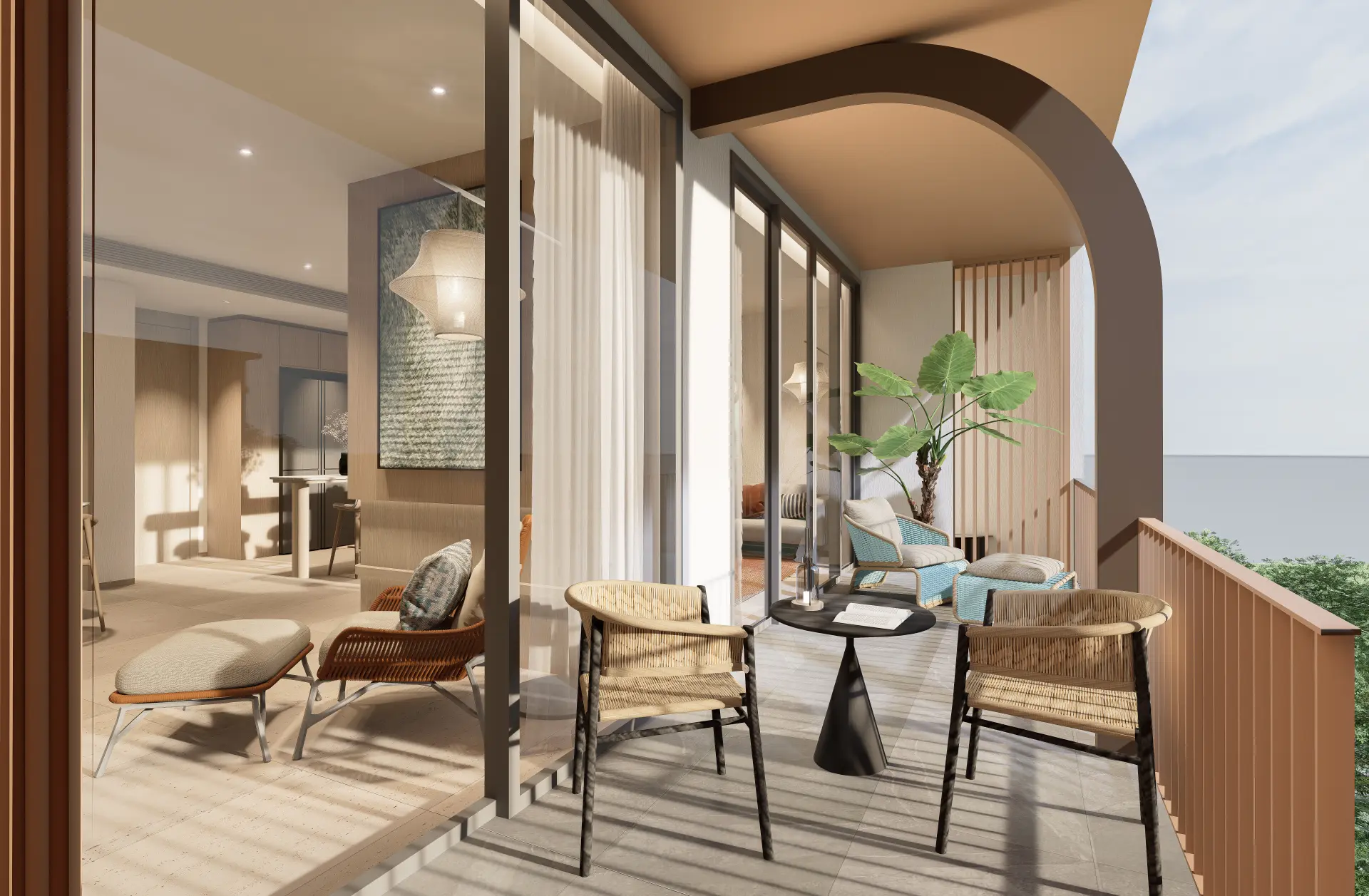 Every unit is positioned to maximize natural light, airflow, and scenic views of the pool, courtyard, or surrounding mountains. With elegant wood-toned façades, spacious balconies (1.5–1.8 meters deep), and privacy-enhancing partitions, the design embodies a seamless blend of sophistication and comfort.