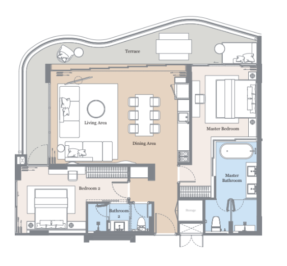 Each 2-bedroom apartment at Residences at Garrya Phuket is carefully curated to deliver both comfort and practicality. Interiors span 115 sqm and are finished with high-quality materials that reflect both aesthetic appeal and long-term durability.
