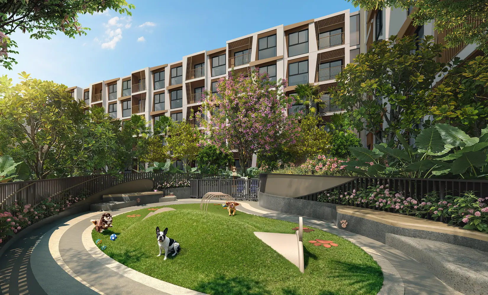 As a pet-friendly condominium, Rhea by Sansiri includes a dedicated pet park where pets can safely exercise and socialize.