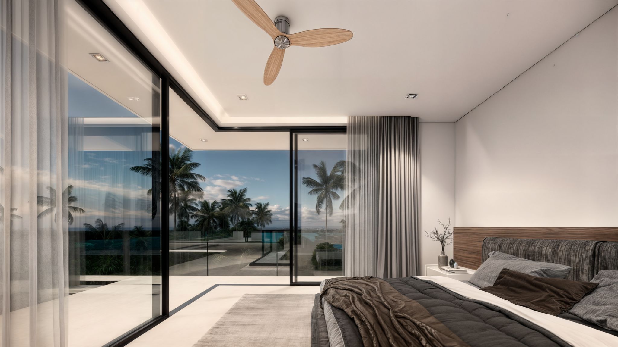 Large en-suite bedrooms with full-height windows to maximize sea views and natural light.