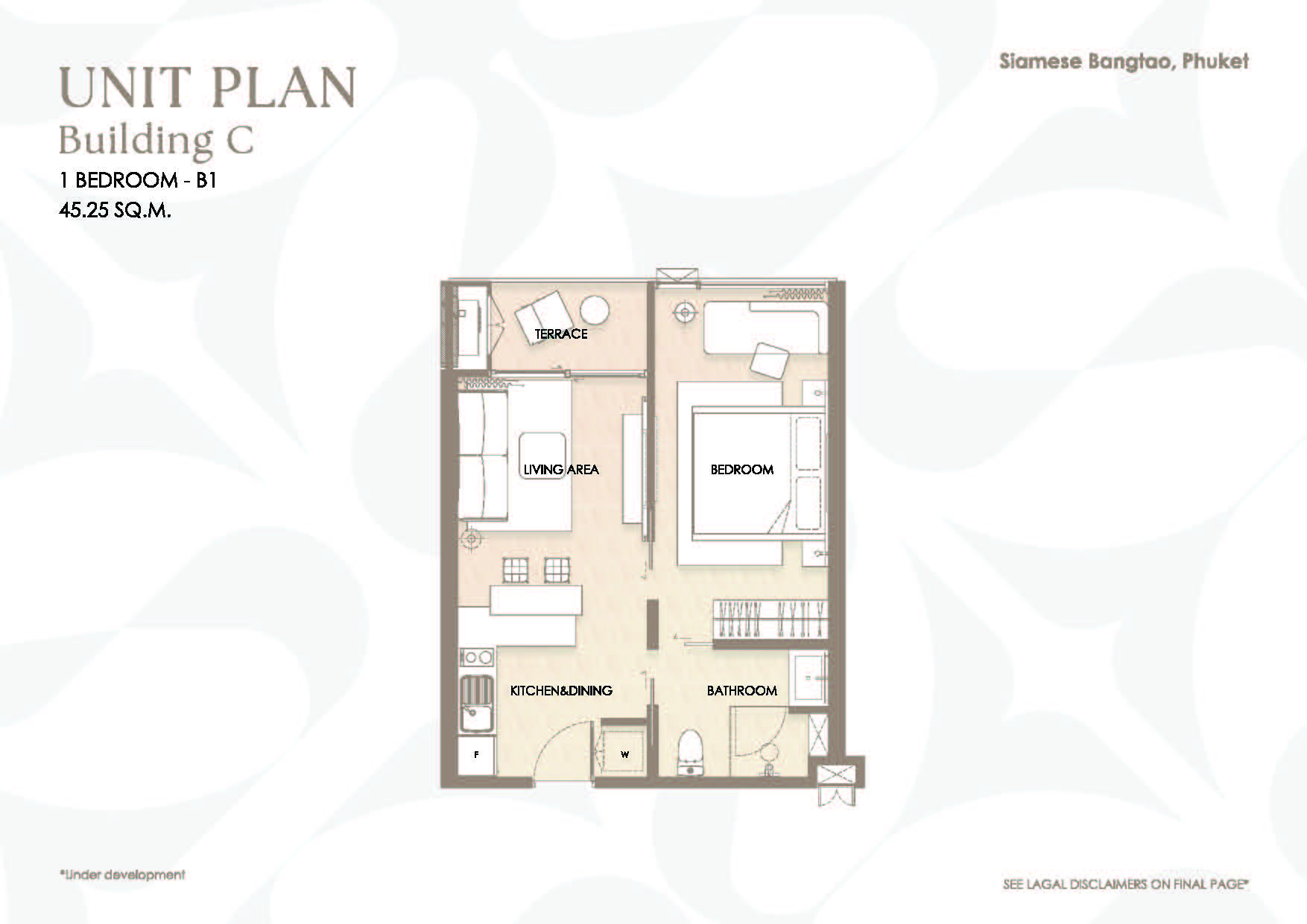 Siamese Bangtao 1-Bedroom Unit: Spacious Elegance in a 45-Sqm Haven