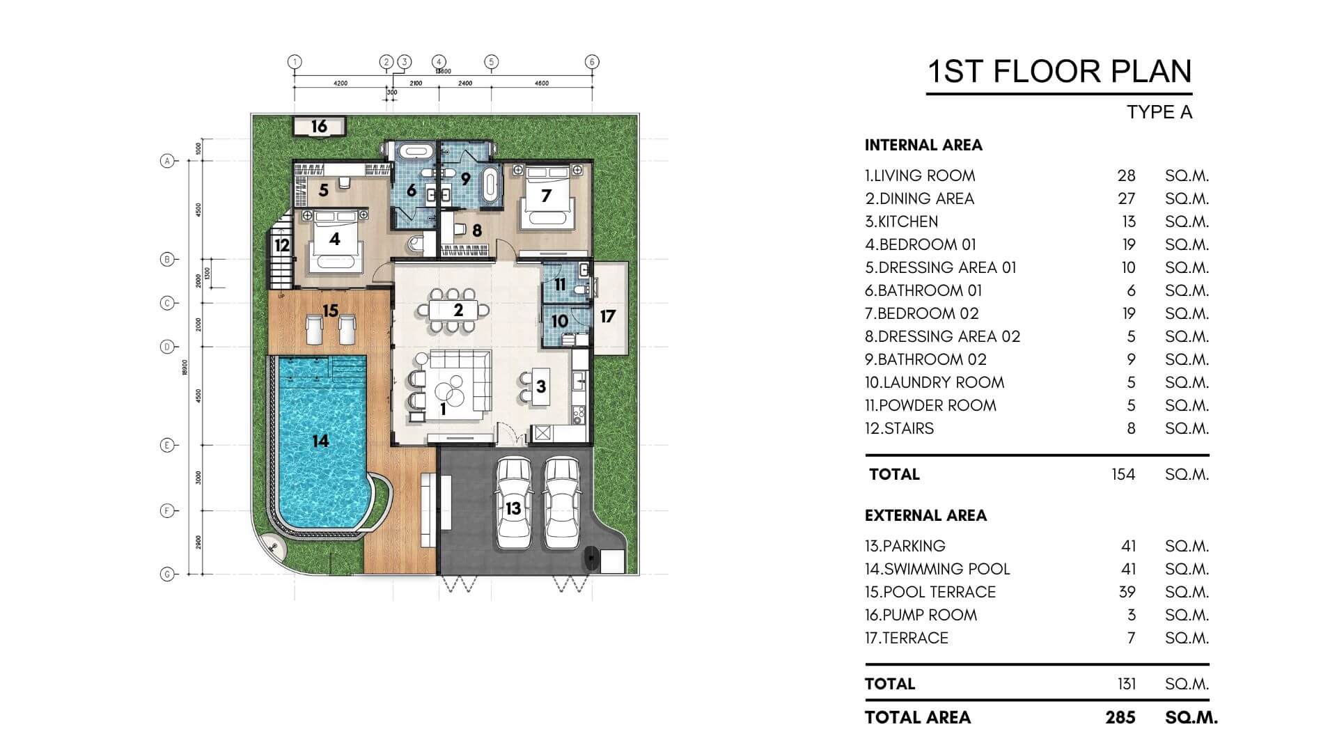 Spanning a total usable area of 456 sqm, Sierra Vista Villas – Type A is crafted to perfection. The villa features two expansive floors, complete with indoor and outdoor spaces designed to maximize comfort and natural light.
