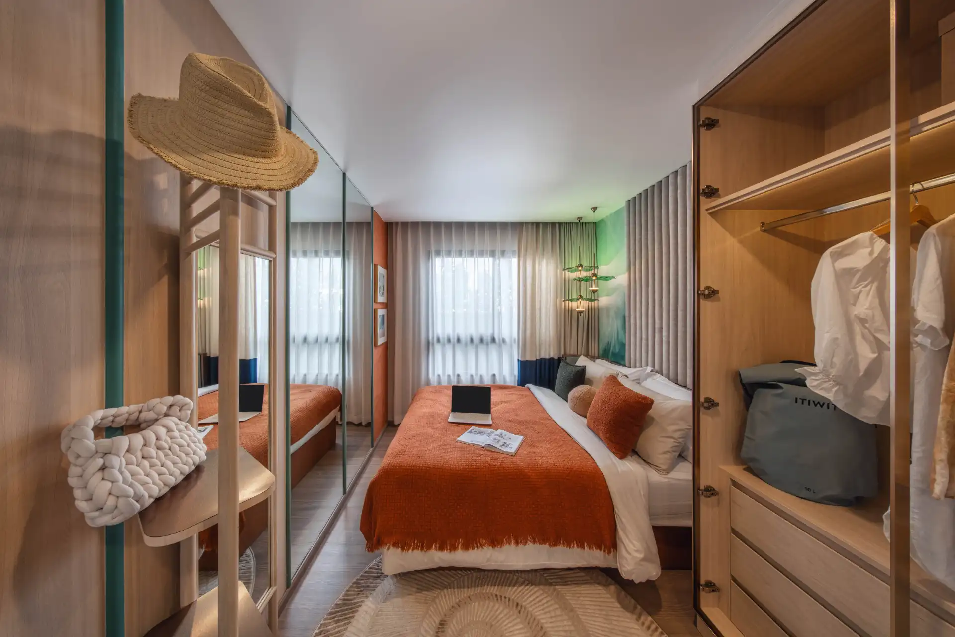This design approach results in a visually distinctive residence that harmonises with contemporary urban lifestyles. The buildings feature modern architectural forms complemented by colourful accents and landscaped green areas, creating a living environment that is both stylish and relaxing.