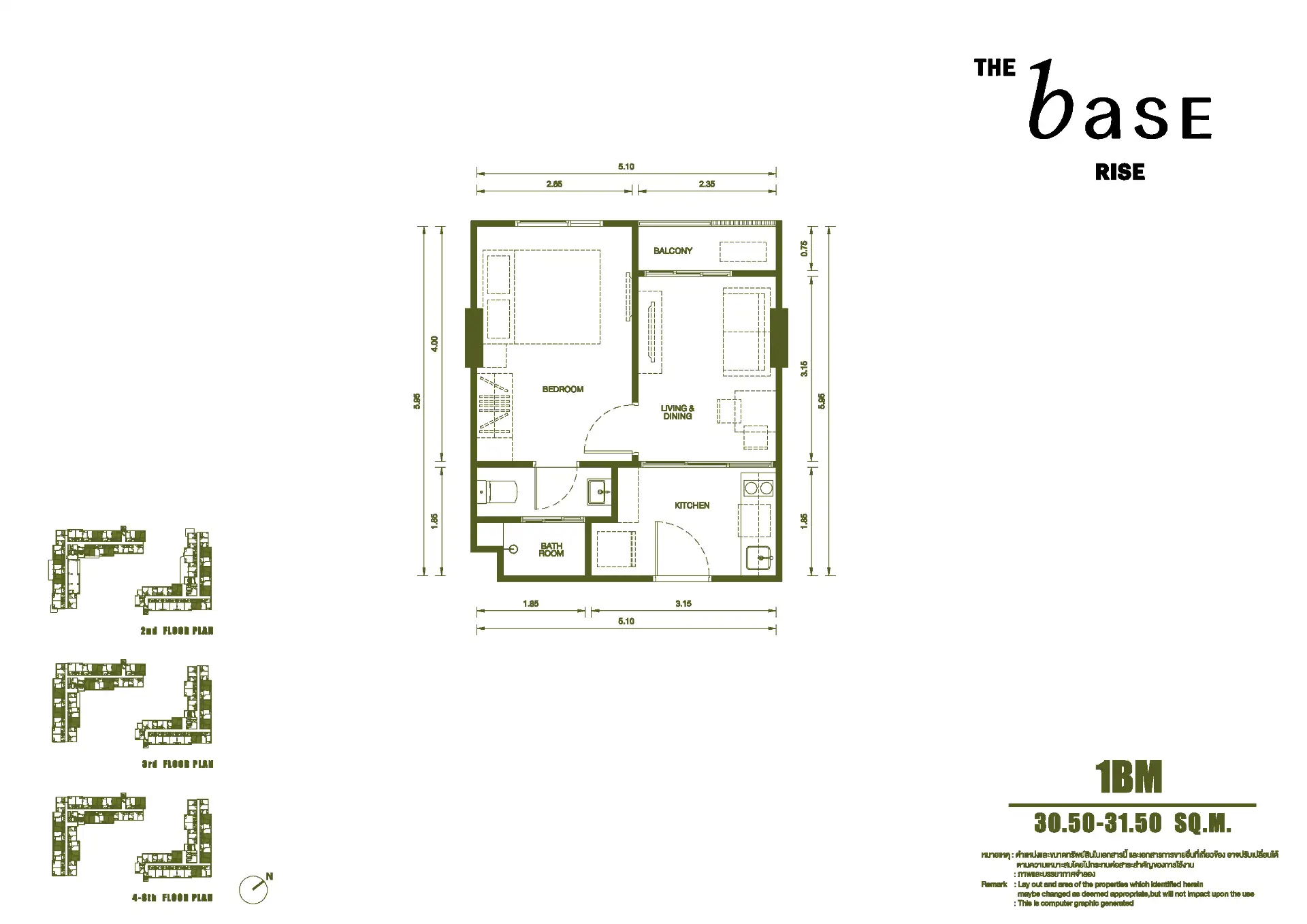 The The Base Rise – 1BR (M) units typically range from approximately 30 to 34 square meters, offering a comfortable balance between compact living and spacious design. The layout is carefully planned to ensure that every part of the unit serves a practical purpose while still maintaining a sense of openness.