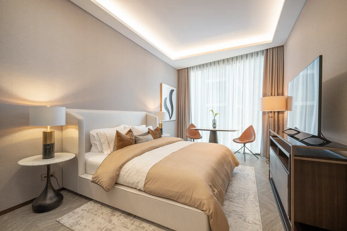 Every unit is outfitted with top-of-the-line fixtures, including imported marble and engineered wood flooring, custom-built cabinetry, and fully equipped kitchens featuring European appliances. Bathrooms are designed as spa-like sanctuaries, with rain showers, deep soaking tubs, and premium sanitary ware.
