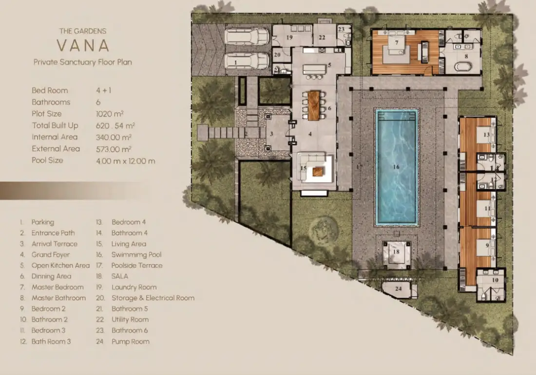 The Gardens by Vichara – Vana represents the pinnacle of refined tropical living, where nature, architecture, and wellness come together in perfect balance. Located within the prestigious The Gardens by Vichara master development, Vana offers a serene residential sanctuary that redefines luxury in the heart of Phuket. Designed for those who value privacy, sophistication, and connection to the natural world, this exclusive villa collection embodies the essence of “living in harmony.”
