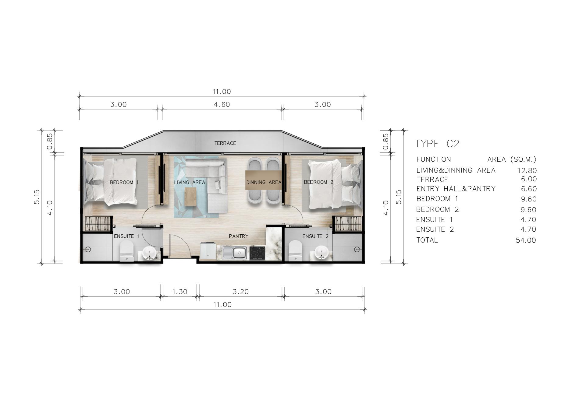 Your 2BR Superior comes fully furnished and move-in ready. Elegant furniture, modern finishes, built-in storage, air conditioning, premium appliances, and tasteful décor are all included in the price. This means you can start using or renting your unit immediately, without hidden costs for furniture or fittings.