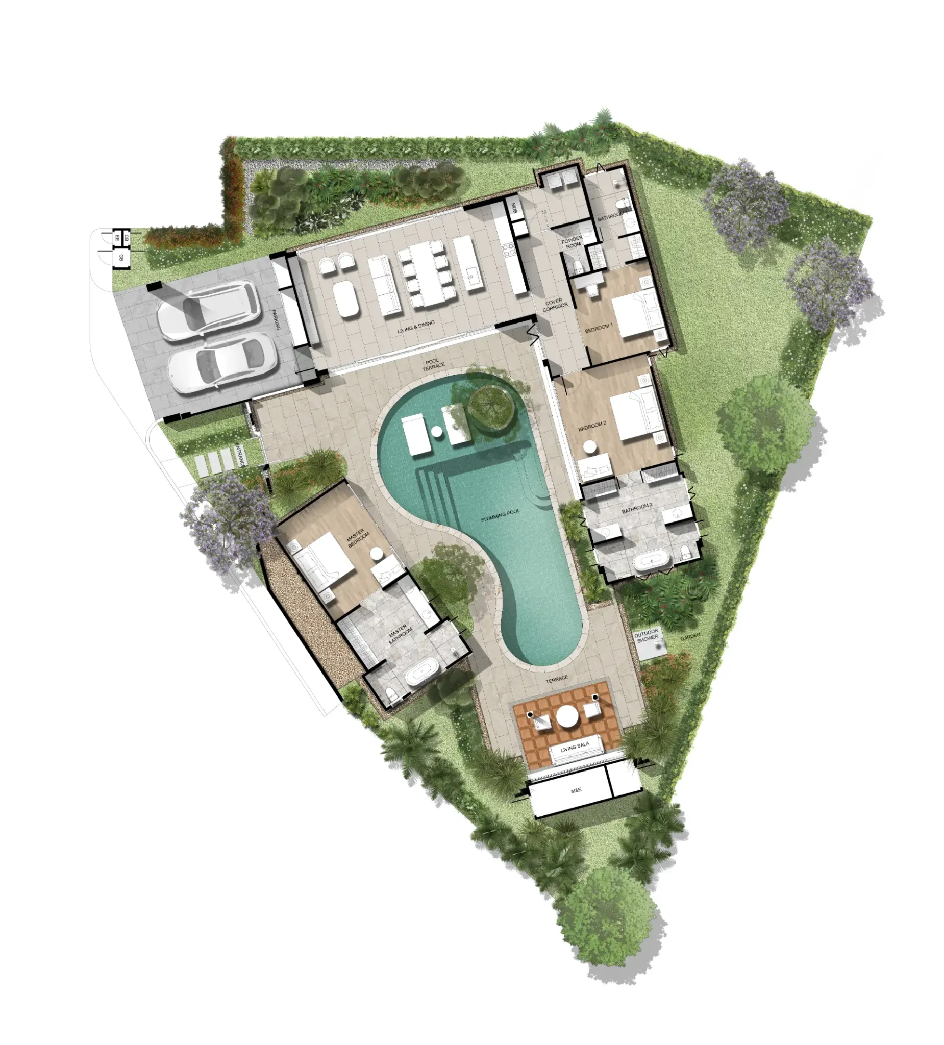 Key villa features include: