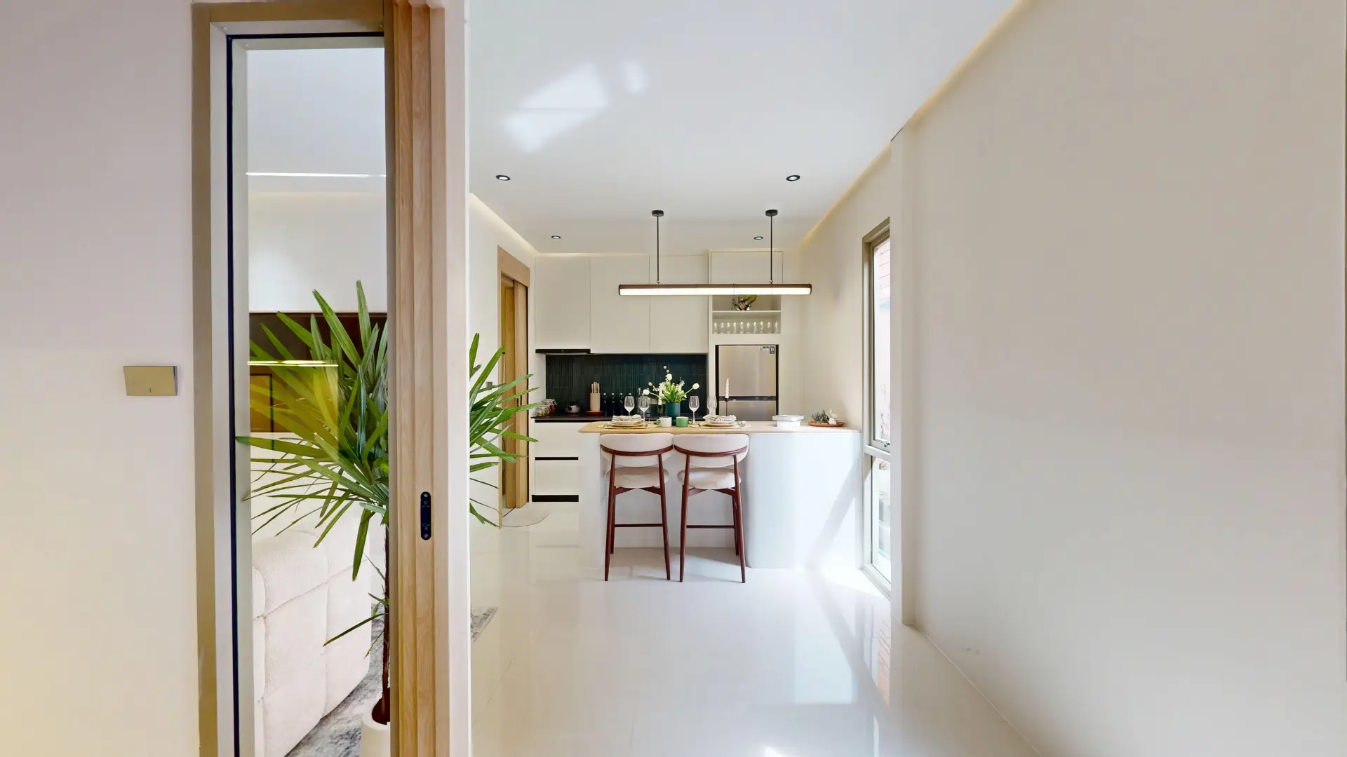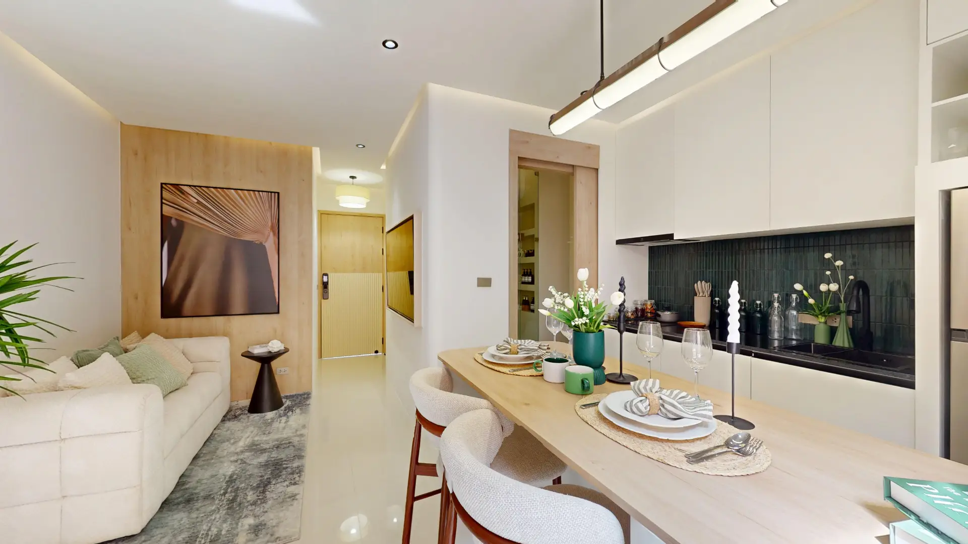 As you enter the unit, you’re welcomed by an open-plan living and dining area filled with natural light from large windows and sliding doors. The interiors feature a contemporary design with soft tones, creating a warm and comfortable environment. Whether you’re spending time with loved ones, relaxing after a long day, or hosting guests, the spacious layout ensures maximum comfort.