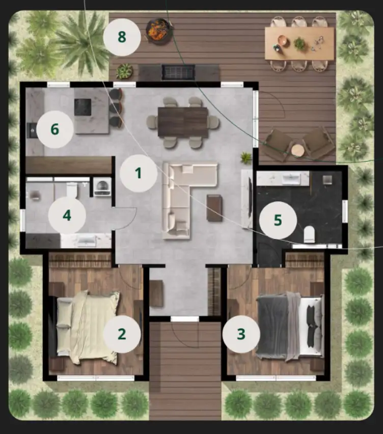 All villas come fully furnished with BOSCH household appliances, Mitsubishi air conditioners, rattan terrace furniture, premium beds, built-in cabinetry, and high-quality textiles. This ensures that your home is completely ready for immediate living or rental from the moment you receive the keys.