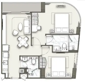 The 2 BR unit (Type N) features 62 sqm of thoughtfully designed living space—making it the largest residential layout in Vibe Residence Karon. This generous floor plan allows for comfort, privacy, and flexibility, ideal for those who want more room for living, entertaining, or long-term stays.