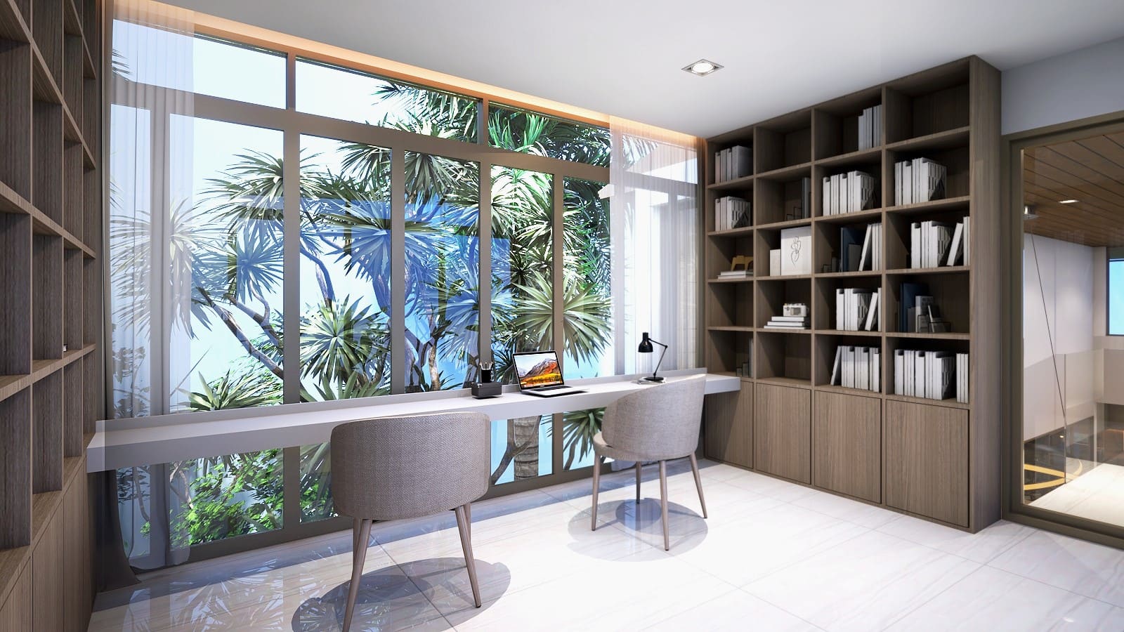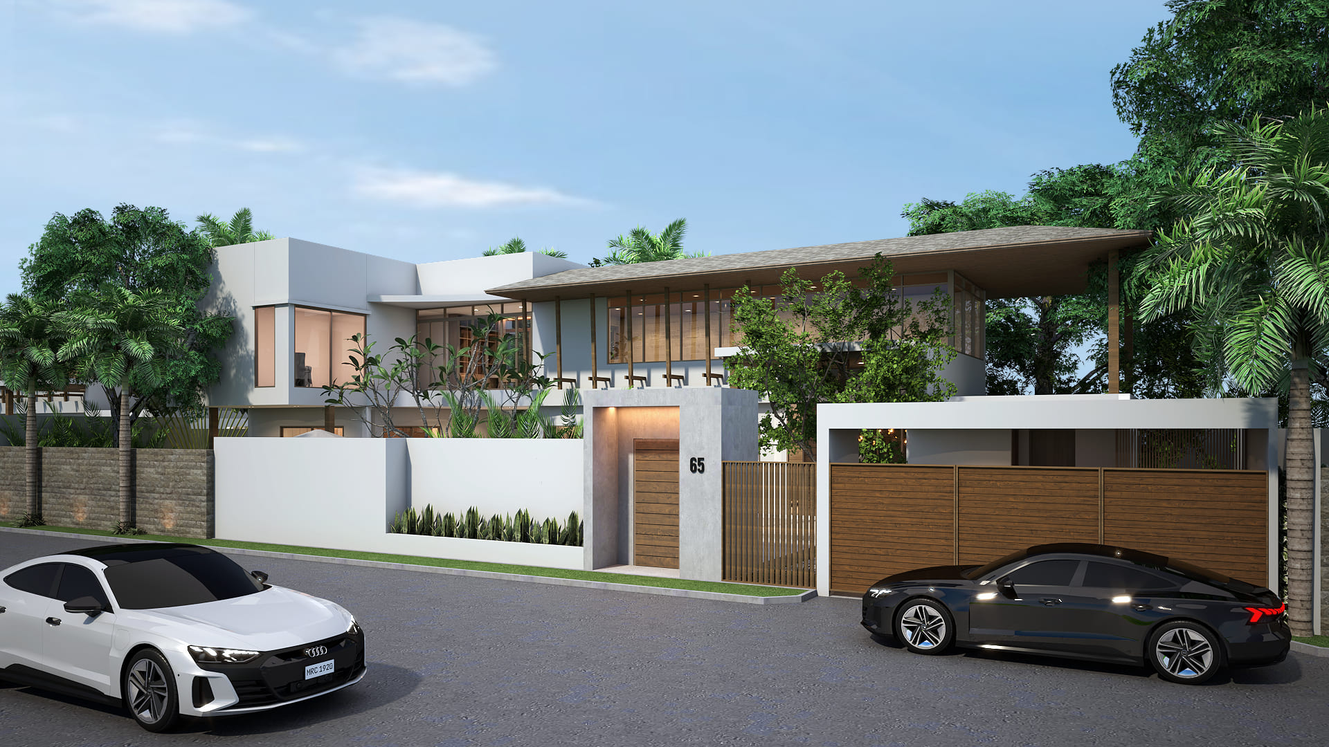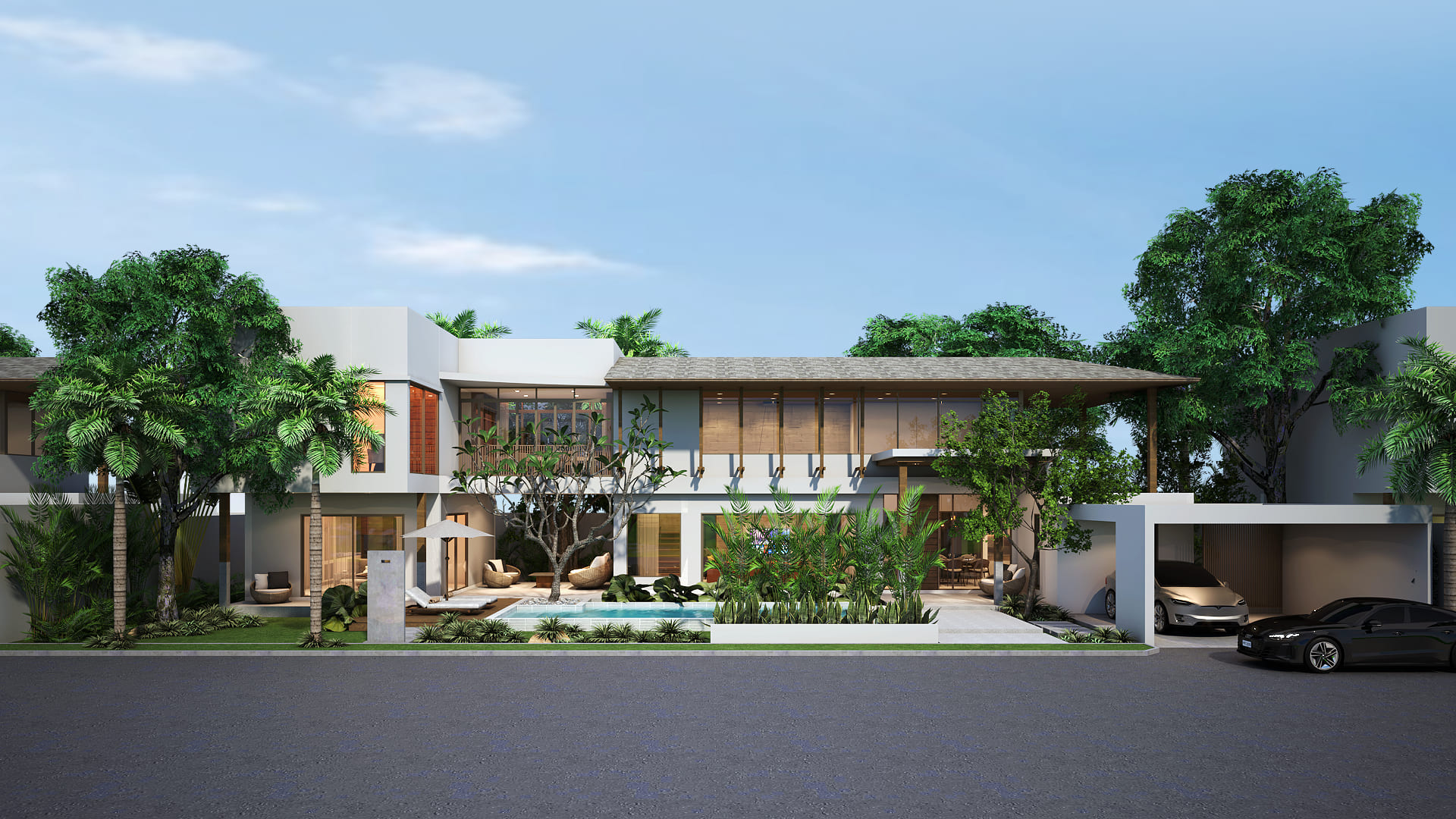 The villas at Vinzita Elite Residences are built in a Modern Tropical Style, blending clean architectural lines with natural materials to create a soothing, elegant environment. The two-storey design features wide-open spaces, lofty ceilings, and seamless indoor-outdoor transitions.