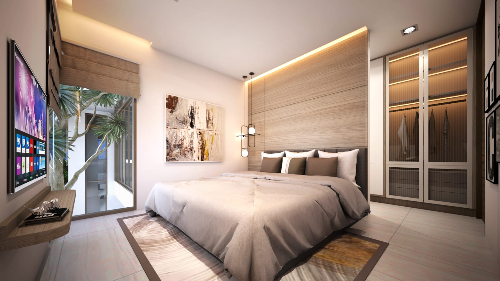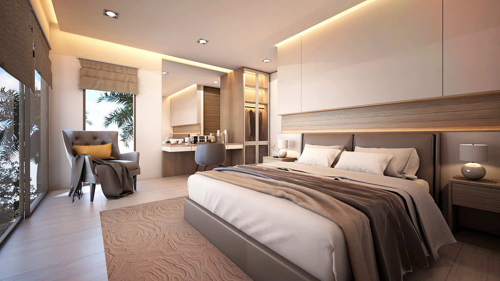 Master bedroom on ground floor with direct pool access – a nod to resort-style living