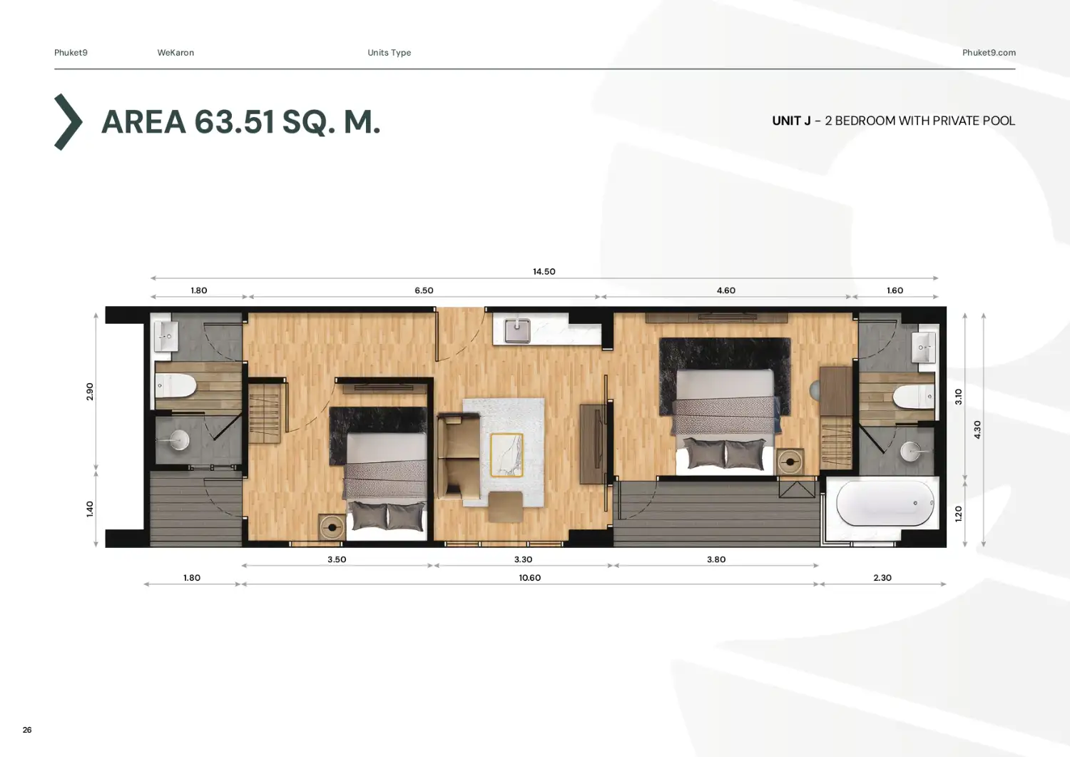 Wekaron – 2BR Pool Access is developed by Phuket9, a leading construction and property management company operating in Phuket since 2004.