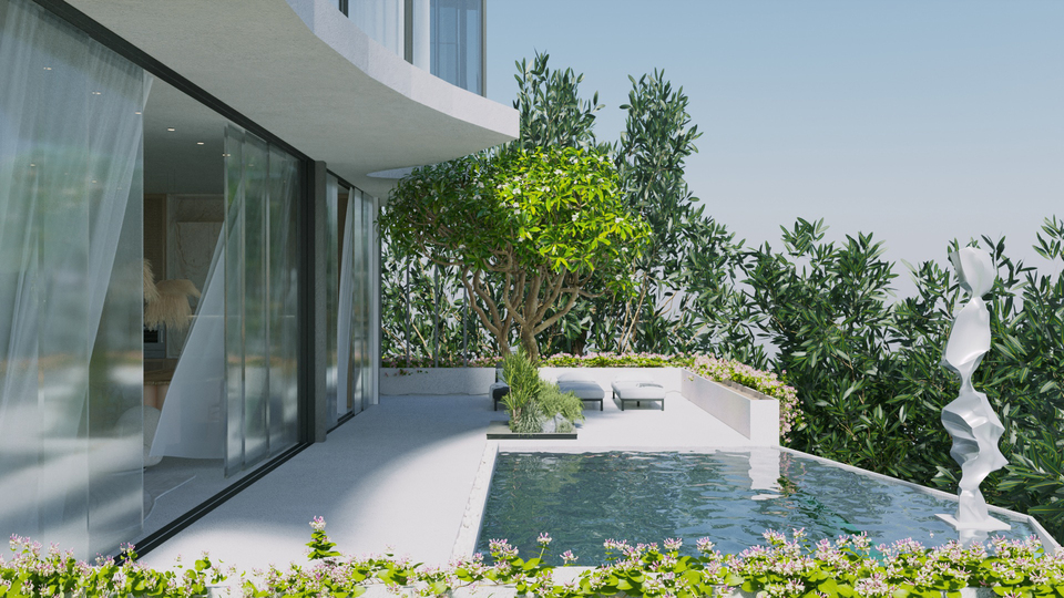 At Zen Villas, outdoor living is just as important as indoor comfort. Each villa comes with its own private infinity pool, offering the perfect spot to cool off, relax, or entertain. The seamless design allows you to enjoy the pool while taking in the mesmerizing views of the sea and mountains. Surrounding the pool is a private tropical garden, carefully landscaped to enhance the sense of privacy and natural beauty. The garden provides a peaceful retreat, ideal for meditation, yoga, or simply unwinding in your own slice of paradise.